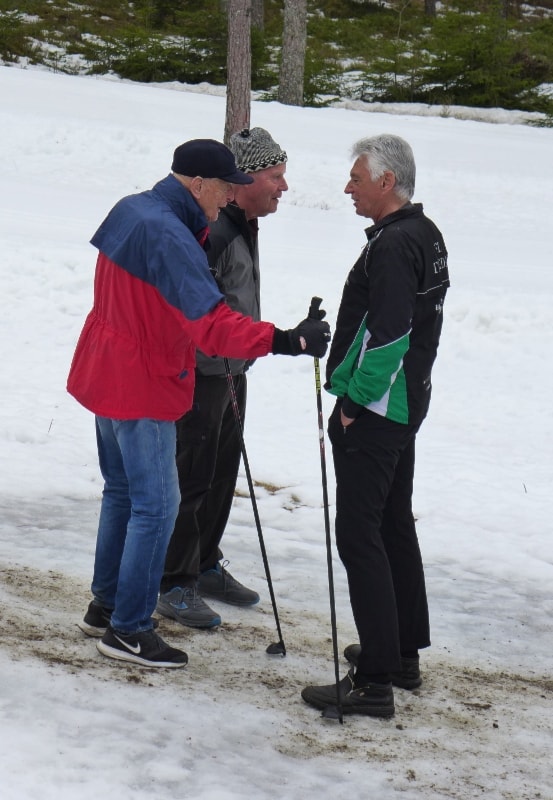 Et hyggelig møte mellom 2 tidligere ledere i TFL, Jan-Gunnar Lilledal og Edmund Eide-og vi kan legge til - mangeårige deltagere i Vasaloppet. Foto Nossen