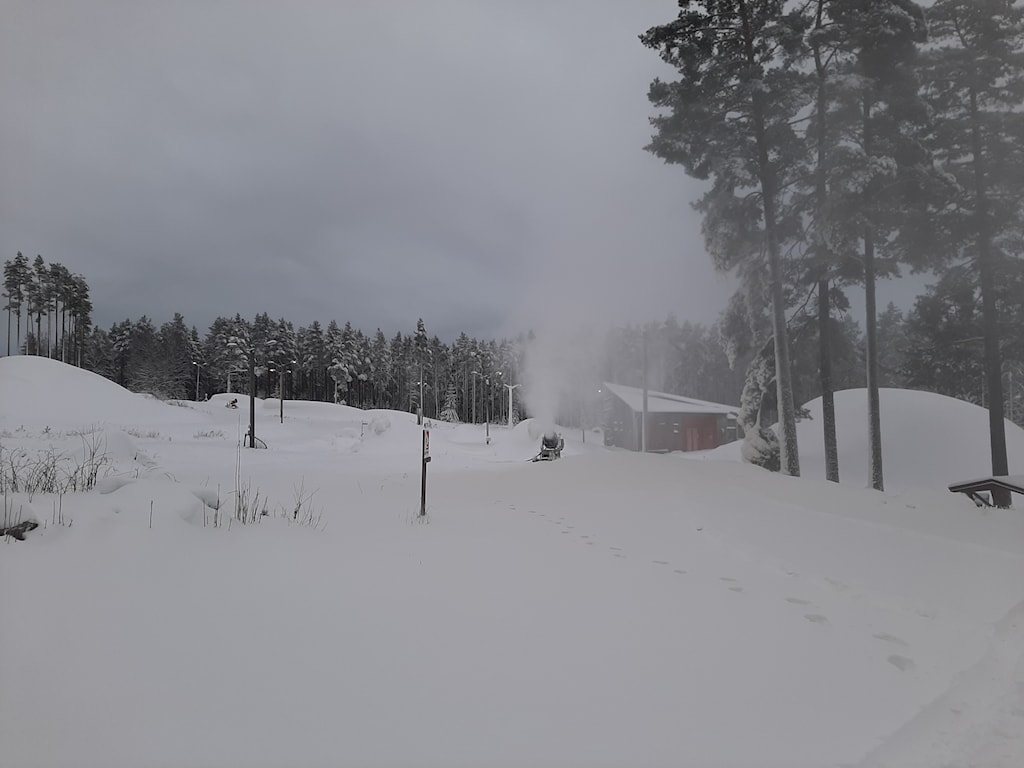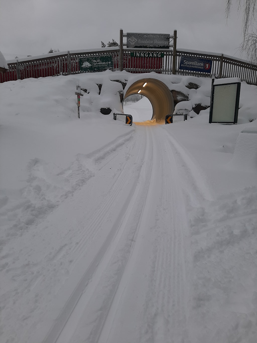 TFLs lysløype i Ertemarka, 7 km, er "tråkka" og kjørt et spor. I skianlegget er det store snø hauger og snøkanoner som går, så der er det ikke preparert!